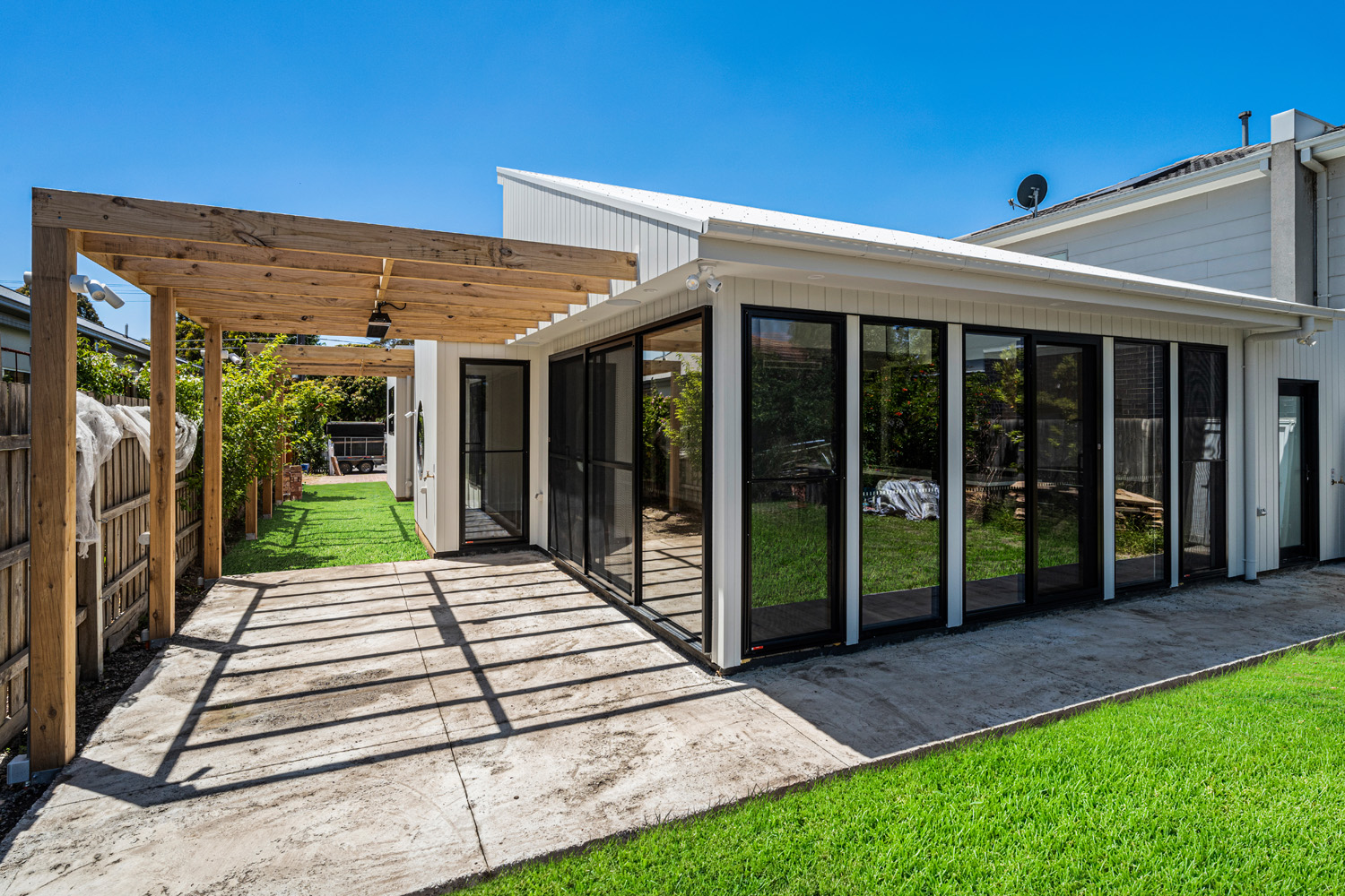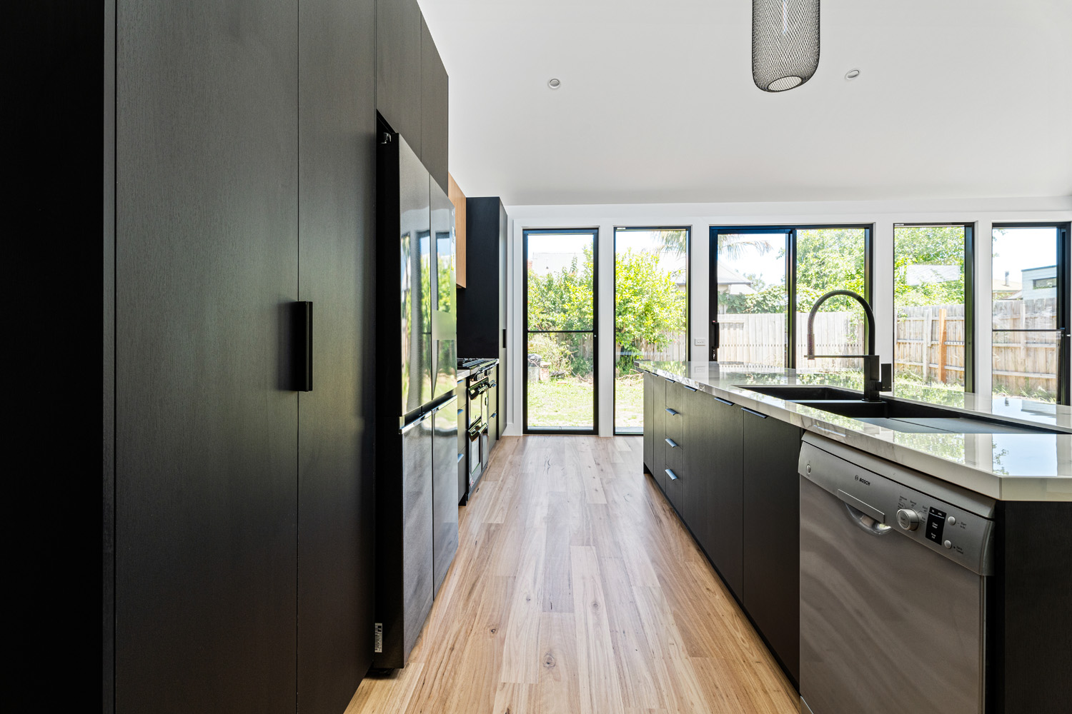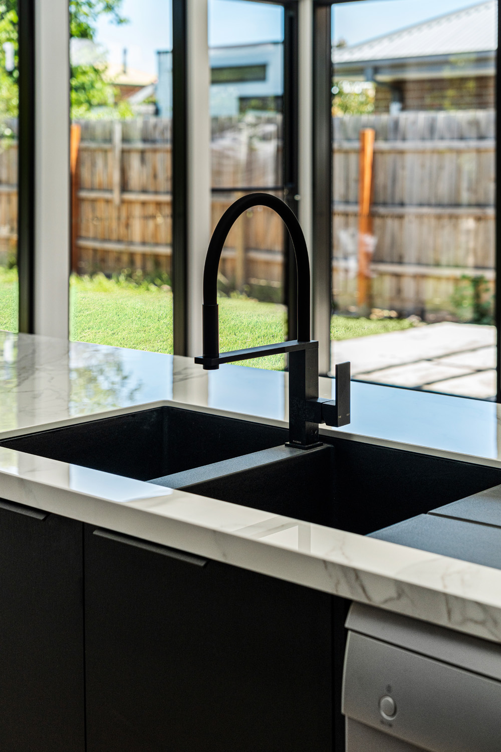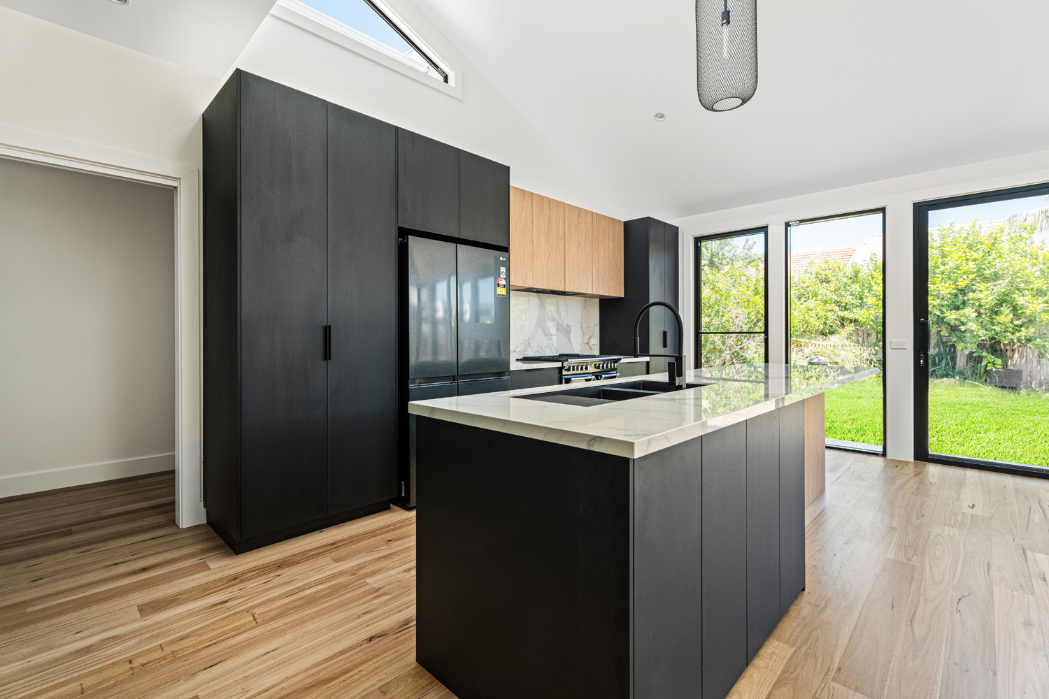 4-bed, 2-bath custom build with porthole window and glass feature brick wall.